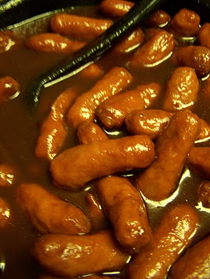 *Note: I bought this big bag of Smokies at Costco. You can easily half this recipe with a smaller bag like those sold at the grocery store. You can make this recipe with hot dogs cut into thirds.
